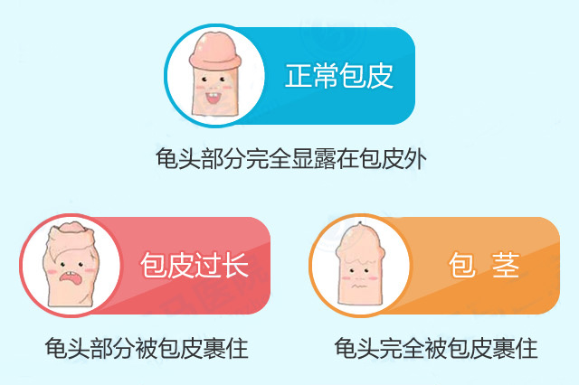 包皮覆盖尿道口,但能上翻露出整个龟头。这是判断包皮过长的一个主要标准。当阴茎勃起或未勃起时,包皮都覆盖在龟头上,使龟头不能自然外露,这即为包皮过长。然而,如果包皮虽然较长,但能自由地向上翻转显露整个阴茎头,这种情况下并不一定是真正的包皮过长,有时只是患者多虑了。